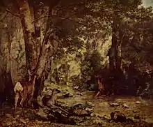 • Dans l'art profane, le cerf figure dans les scènes de chasse. Avec le loup et le chien, il représente la mélancolie dans les représentations des tempéraments ou des humeurs[11].