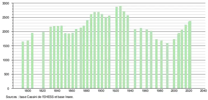 Au dernier recensement, la commune comptait 2373 habitants.