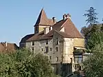 Château en pierre ocre, comme le clocher à dôme à impériale de l'église Saint-Just d'Arbois. | ||||