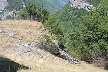 Roc Puppin et chapelle moderne, depuis Les Plaines (Notre-Dame-du-Pré) | |||