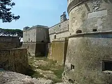 Le , la citadelle fortifiée est attaquée et conquise pour la première fois par des pirates sarrasins. De Vernazza, il fut vendu à la famille Onofrio Scarciglia de Lecce puis à la famille Rugge. Finalement, il fut acheté par l'Administration Provinciale de Lecce.