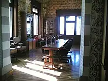 Le mobilier néo-gothique, riche d'influences exotiques, notamment hispano-mauresques et orientales, culmine dans la chambre turque où des centaines de meubles, bijoux, armes, vases, canapés et lampes se profilent sous le lourd rideau du plafond qui simule un rideau entre narguilé et œufs d'autruche.