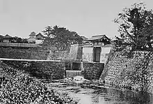 L'ancien pont avant qu'il ne soit remplacé par un pont de style européen à l'époque Meiji, avec la Fushimi-yagura à l'arrière.