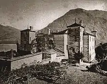 Issogne fut le siège d'une maison forte épiscopale jusqu'à 1379, similaire à la maison forte de la Villette à Cogne ou à la tour Colin à Villeneuve. En 1333, Aymon de Verrès, craignant la présence de l'évêque d'Aoste près de son territoire, attaque et détruit la maison forte épiscopale en accusant son propriétaire de l'avoir bâtie sans sa permission, et en l'incluant ainsi dans son fief.