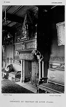 - Gaston Save - La cheminée du château de Lusse (Vosges) - La Lorraine - Artiste - 10e année, No 17 - 24 avril 1892 - pages 275 - 276, avec une illustration à la fin du fascicule. Voir Limédia Kiosque