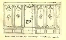 Après cette chambre à coucher se trouve une galerie d'une élégance & d'une délicatesse, qui fait honneur au goût de Madame de Pompadour, qui en a imaginé & tracé les desseins elle-même.