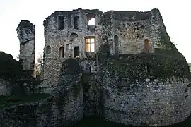 Le premier château construit au XIe siècle est un solide donjon roman de style normand, de forme rectangulaire (18 × 11 mètres), en moellons de petite taille dont certains pans subsistent. Une palissade en bois l'entoure. Des douves sont probablement creusées[4].