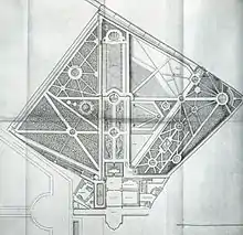 Schéma de la vue sur le château de Chaville édifié par Boullée, fin XVIIIe, du côté du parterre