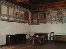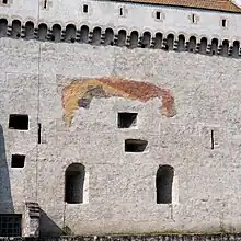 Un sgraffite, découvert sur un mur daté du XIIIe siècle dans le petit salon du château, illustre un chevalier aux armes de Savoie. Ce dessin a peut-être été inspiré par l’un des sceaux équestres utilisés par la famille de Savoie. L’équipement de ce cavalier pourrait renvoyer à Amédée V de Savoie, qui avait un rapport étroit avec Chillon, château où il s’est marié[10].