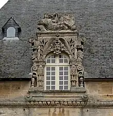 Le château est construit dans un style sobre, contrastant avec le décor des lucarnes sculptées.
