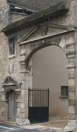 Les bâtiments entourent une cour rectangulaire à laquelle on accède au nord par un portail formé d'une porte charretière en anse de panier et d'une porte piétonne en plein cintre, inscrites chacune entre deux pilastres en bossage vermiculé un sur deux et couronnées de frontons brisés encadrant un cartouche dont les armoiries ont été bûchées. Une petite tour carrée flanque à l'ouest ce portail. Le corps de logis principal, qui a subi de multiples remaniements, s'étend à l'est. De plan rectangulaire allongé, il comprend un rez-de-chaussée et un étage carré sous un toit à deux versants. Il est flanqué sur son angle nord est d'une tourelle circulaire. Contre son pignon sud, s'appuie un gros pavillon carré comportant un étage, un demi-étage et un étage de combles avec lucarnes à frontons triangulaires, surmontés de boules d'amortissement.