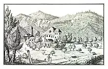 Il s'agit d'un édifice Renaissance de trois étages, doté de tours carrées saillantes. Une belle cour à arcades jouxte le bâtiment principal. Elle est ornée d'un cadran solaire. Devant elle se dresse un portail muni d'un magnifique treillis en fer forgé. Alors que le bâtiment principal a un toit en croupe massif, la tour de la porte a une tourelle solide avec une horloge[1].