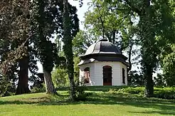 Le château comportait autrefois deux vastes jardins : le jardin inférieur, qui s'étendait devant l'aile centrale, et le jardin supérieur, qui suivait le cour d'honneur et était orienté vers l'ouest.
