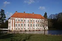 Le château actuel est construit par la famille Thienen au début du XVIIIe siècle en 1726. Le propriétaire Heinrich von Thienen fait appel au maître d'œuvre d'Eutin, Rudolph Matthias Dallin qui le construit à bout d'une petite île ovale. La moitié du château donne directement sur l'eau. Le château est construit en briques et l'on remarque au-dessus de la porte d'honneur les blasons des familles Thienen et Brockdorff. Ensuite la famille Rantzau (de) en hérite. Les ducs d'Oldenbourg l'achètent en 1839. L'ancien territoire des princes-évêques de Lübeck étant alors une enclave du grand-duché d'Oldenbourg. La famille est toujours propriétaire et exploite les terres, tout en y organisant des concours d'équitation. Le château, habité, ne se visite pas.
