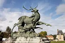 Bronze d'une allée, figurant trois chiens attaquant un cerf.