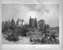 - Gelduin de Landal, seigneur de Landal, décédé après 1137, année où il fonde l'abbaye de la Vieuville[13] (sur Épiniac, à 4 km au nord du château), avec sa femme Adelise. Sa fille Florine, dame du Fresnay, aurait épousé de Bertrand du Guesclin, seigneur de Guarplic (+ 1150) ; D'après Dom Augustin du Pas, Geldoin eut deux fils, Jean, Hamon et Zacharie de Montsorel[14];