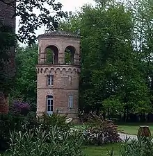 Dans le parc, un château d'eau ou pavillon des bains est installé au XIXe siècle pour alimenter en eau les cabinets de toilette[2]. À l'ouest une partie des douves et du mur de clôture est conservée[5].