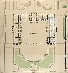 Plan du Château-Vieux et de l'aile des marronniers sur la droite. ADY.