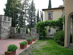 La propriété est entourée d'un parc romantique de cyprès et de chênes verts qui la cachent, voulu par les Bellucci Mascagni (propriétaires depuis 1892), avec une petite chapelle à l'extérieur du premier cercle de remparts, d'aspect austère et simple à l'extérieur et décoré à l'intérieur d'une fresque attribuée à l'école de Giorgio Vasari. La lunette est décorée d'une terre cuite avec sainte Lucie, de l'école de Luca della Robbia.
