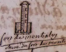 Les vestiges du donjon, où on aperçoit une meurtrière à l'étage