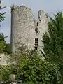 La tour circulaire dite « Jourdain », à l'angle nord-est, a un diamètre de 8,5 m avec des murs de 1,5 m d'épaisseur. Son intérieur offre des parois hexagonales. Elle possédait trois étages et une cave. Le rez-de-chaussée a pu être une chapelle d'après une clé de voûte montrant une main bénissante[4]. Les fenêtres moulurées aux étages ont été ajoutées au XVe siècle, dans cette tour du XIIIe siècle[2].