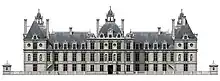Ce château est construit sur un plan carré, le corps de logis construit en U étant orné à chaque angle d'un pavillon rectangulaire, presque dans les mêmes dispositions que le château de Louis XIII à Versailles. La composition des bâtiments du château présentent également une hiérarchie des étages : quatre niveaux pour le château, trois pour les écuries, deux pour les communs, et un pour le mur de clôture. Les façades sont décorées par des statues antiques dont certaines datent du IIe siècle.