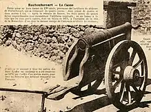 Pendant l'entre deux guerres, la cour du château hébergea un canon de 77 allemand, donné par le gouvernement français en reconnaissance du sacrifice des Rochechouartais morts pendant la guerre de 14-18.