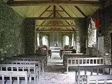 À l'intérieur, trône un vitrail à l’effigie de Saint-Quentin, en clin d’œil à une statue en bois du saint, du XVIIIe siècle, désormais dans l'église de Bérigny. Le martyr chrétien du IIIe siècle a donné son nom à deux villages manchois : Saint-Quentin-sur-le-Homme et Saint-Quentin-d'Elle.