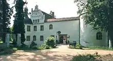 Le château a été construit à l'emplacement d'un ancien Wasserburg du XIIe siècle endommagé par les troupes suédoises de la Guerre de Trente Ans, mais qui resta imprenable. Le village quant à lui est presque entièrement détruit par eux en 1633. La famille von Rohr est propriétaire du château de 1652 à 1714, puis le conseiller au commerce du royaume de Prusse von Jampert de 1744 à 1775. C'est lui qui entreprend la reconstruction du château, tel qu'il se présente actuellement en quatre corps de bâtiment. Des dizaines de propriétaires se succéderont ensuite. Un parc est dessiné entre 1878 et 1880 dans le style anglais pour son propriétaire d'alors, Robert von Löbenstein, et agrandi en 1911.