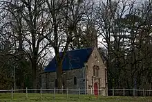 - La chapelle de style gothique, au fond du parc, et surplombant un étang, recouvre le tombeau de Jacques-Louis II de La Ferté Meun.