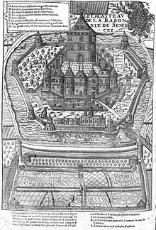 Entouré de fossés, le château primitif était de plan approximativement rectangulaire, cantonné de tours circulaires. Au XVe siècle, il avait été renforcé de deux grosses tours flanquant la porte d'entrée, qui ne disparurent qu'au début du XIXe siècle. Les travaux du XVIe siècle, quant à eux, portèrent essentiellement sur le percement de hautes fenêtres et la transformation de la disposition et du décor du grand corps de logis appuyé contre la courtine nord. Ils furent complétés par l'aménagement, après comblement des fossés, d'une vaste enceinte cernée de courtines crénelées, cantonnée de bastions et environnée de douves d'eau vive, qui englobait l'ancienne basse-cour où était située la chapelle et était précédée au nord d'un pont de pierre aboutissant à un corps de logis flanqué de pavillons à toits aigus que couronnaient des statues de Jupiter, Vénus et Junon. Les façades étaient couvertes de sculptures. Tout a disparu à l'exception des quatre pavillons d'angle, des bases des murailles, d'une partie des douves, de deux ponts de pierre et des communs.