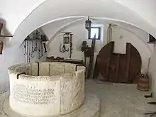 La chapelle est intégrée dans le mur d'enceinte qui entoure le château. L'abside est décorée de peintures du XIIe siècle, dont il ne reste que des fragments. L'intérieur est rénové au XVIIe siècle. Le clocher-tour a probablement été construit comme une tour d'église et une tour de guet. Il mesure cinq étages et est couronné d'un clocher à bulbe baroque en forme d'oignon[10].