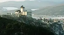 Le château féodal, stratégiquement situé en haut d'une falaise, fut construit au XIe siècle. Il a une importance particulière en tant qu'une forteresse frontière du royaume de Hongrie et a abrité longtemps le siège administratif du comitat de Trencsén.