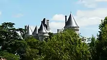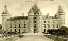 Conçu sur un plan triangulaire, il comporte cinq tours coniques et une tour de guet coiffée de toits d'ardoise.