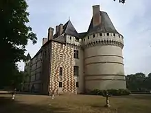 La tour ouest du Château. On peut observer à gauche l'aile "brique et pierre", seul reste de l'édifice qui précédait le château actuel.