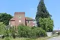 Le château des sires de Bâgé a été construit au XIVe siècle. Il ne subsiste qu'un corps de logis dont la façade a été reconstruite au XIXe siècle. Dans les ouvertures du rez-de-chaussée et du premier étage, deux vitraux ont été posés vers 1860[2].