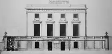 Façade est donnant sur l'ancien jardin botanique, sans colonnes ni pilastres.