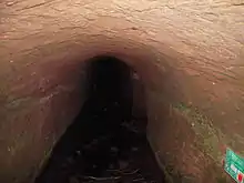En contrebas, on peut apercevoir deux entrées de souterrains qui communiquent entre eux. Ils ont été creusés en 1936 par le Génie militaire pour en faire un dépôt de ravitaillement de la ligne Maginot. Ces aménagements ont été utilisés comme abri par la population pendant les combats de l'hiver 1944-1945. Ce site est actuellement fermé par des grilles, car il héberge des chauve-souris protégées.