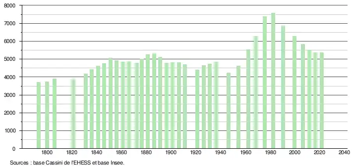 5 378 hab. (2021 en diminution de 0,13 % par rapport à 2015)