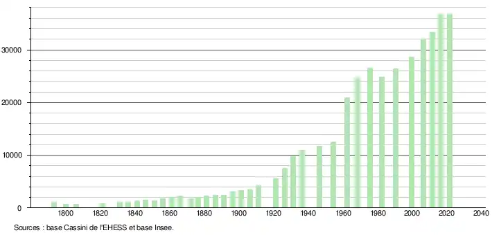 L'évolution du nombre d'habitants est connue à travers les recensements de la population effectués dans la commune depuis 1793. Pour les communes de plus de 10 000 habitants les recensements ont lieu chaque année à la suite d'une enquête par sondage auprès d'un échantillon d'adresses représentant 8 % de leurs logements, contrairement aux autres communes qui ont un recensement réel tous les cinq ans[36],[Note 3].