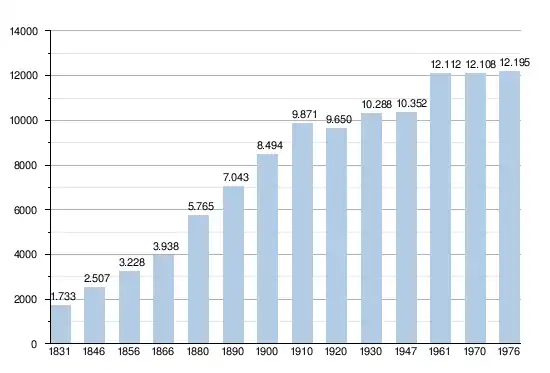 - Sources : INS, Rem. : 1831 jusqu'en 1970 = recensements, 1976 = nombre d'habitants au 31 décembre.