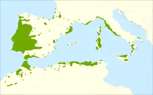 Les plus vastes subéraies du monde se trouvent au Portugal, avec un total de près de 736 000 ha concentrés à 76 % dans la région de l'Alentejo[5]. La superficie de subéraie est en constante augmentation depuis plus d'un demi-siècle au Portugal, et la plupart de ces forêts sont encore jeunes. Maâmora est la plus grande forêt de chênes-lièges du Maroc (130 000 ha).