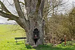 Le nom luxembourgeois du site, Heeschbrecher Bildchen, fait référence à la statue de la Vierge (Bildchen) installée dans le creux du tronc de l'arbre.