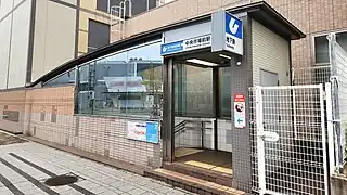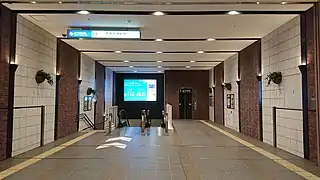 La station dispose de trois accès. Pour les personnes à la mobilité réduite un parcours spécifiques est signalé avec un ascenseur pour rejoindre le niveau -1 puis un deuxième ascenseur pour rejoindre le quais de la station[2]. La carte ICOCA est possible pour l’accès aux portillon d’accès aux quais.