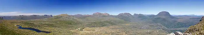 Carte de localisation de la chaîne Pélion en Tasmanie. | |