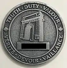 Chaque nouvel élève-officier du Collège militaire royal du Canada à Kingston, en Ontario, reçoit une pièce à la fin de la période d'orientation de première année. La pièce est gravée du nom du collège en français et en anglais entourant les armoiries du collège sur l'avers. Le numéro du collège des cadets et l'arche commémorative sont au verso entourés de la devise dans les deux langues.