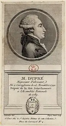Joseph Dupré (1742-1823), marchand-fabricant, député de Carcassonne (1789-1791), maire (1791-1792). Président de la chambre de commerce: (1803-1806,1809-1810,1818-1823). - Apporter un appui individuel ou collectif aux entreprises de son territoire