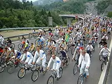La commune est desservie par la route nationale 205 (RN 205) surnommée la Route blanche[32]. Cette 2×2 voies constitue un prolongement de l'autoroute A40, surnommée l'autoroute blanche et s’arrêtant a l'Abbaye, village de la commune de Passy. Sur le territoire communal, se trouve l'entrée du tunnel du Mont-Blanc qui relie Chamonix-Mont-Blanc en France à Courmayeur en Italie[33]. Ce tunnel, d'une longueur totale de 11,6 km, passe sous la Vallée Blanche.