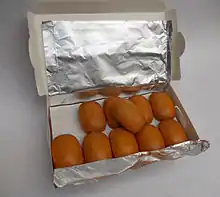 Le conditionnement des Chamonix orange se présente sous la forme d'une boîte en carton à l'intérieur de papier aluminium comportant deux étages séparés par une feuille de deux rangées de biscuits. Il y a eu cependant des versions en boîtes métalliques décorées[3].