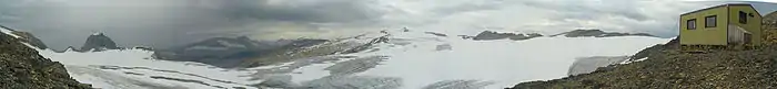 Le champ de glace Waputik couvre une superficie de 40 km2 et se situe à 20 km au nord-ouest de Lake Louise, sur le gauche de la Promenade des Glaciers.